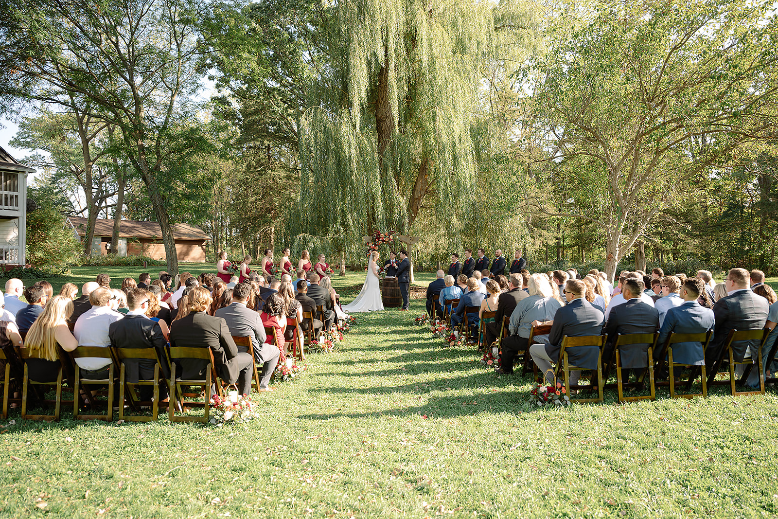 The grounds were beautiful in the fall, the outdoor ceremony space under the willow tree was so picturesque, the reception space is lovely, and the getting ready space was perfect for the wedding party. The venue staff were super helpful and kind. I would definitely recommend booking your wedding here!”